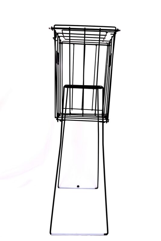 Tote your tennis balls to and from the court with the Tennis Ball Hopper. This hopper features a durable black wire body that houses the tennis balls securely within. The hard exterior supports itself on any court, while the handles allow you to easily move it from place to place and adjust the height while collecting vs while feeding the balls.