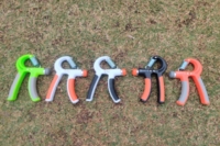 Neoprene foam grips with molded ball bearing handles. PVC Red & Blue translucent 6mm PVC cord.